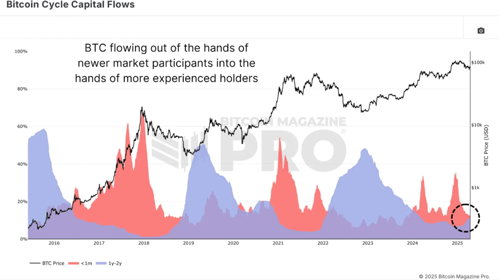 Exchange reserves have continued to decline, signaling that fewer coins are being kept on trading platforms. This typically reflects increased investor confidence and long-term holding behavior. Simultaneously, long-term holders — wallets that haven’t moved BTC in over a year — are accumulating again, reducing circulating supply even further.